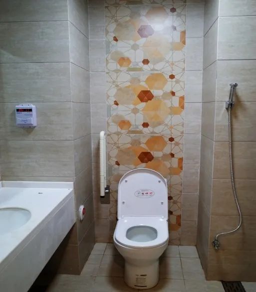 病區衛生間采用幹濕分區,為了產婦、兒童的安全,淋浴間地麵采用拉槽防滑處理,坐便器旁安置緊急呼叫按鈕。除此之外,還設置汙洗龍頭,做到潔、汙分開。真正將人性化設計落到實處。